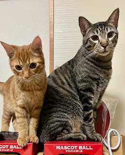2匹とも保護ネコで、生後2か月までお外で頑張って暮らしていました。