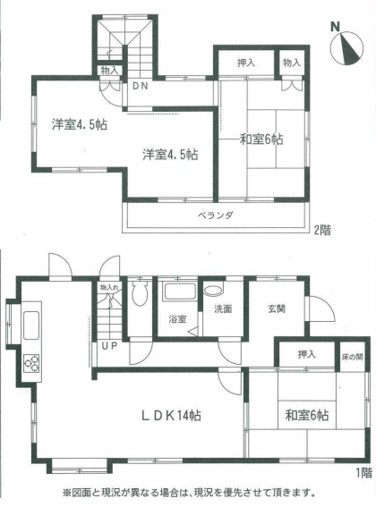 | 間取り詳細 | LDK14帖・和室6帖・洋室4.5帖・4.5帖・和室6.帖 |